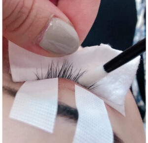 【お客様のまつ毛に負担がないように1本1本丁寧に装着していきます】